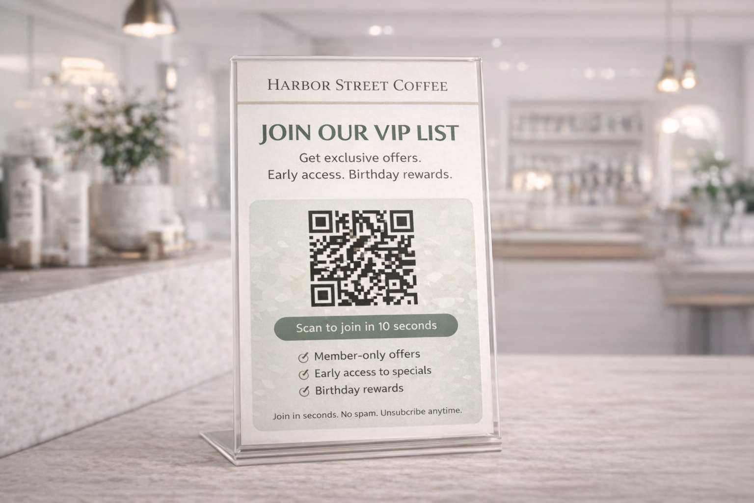 Collect opt-ins at checkout, then send offers that bring customers back on slow days -- with built-in spend controls and opt-out handling.
